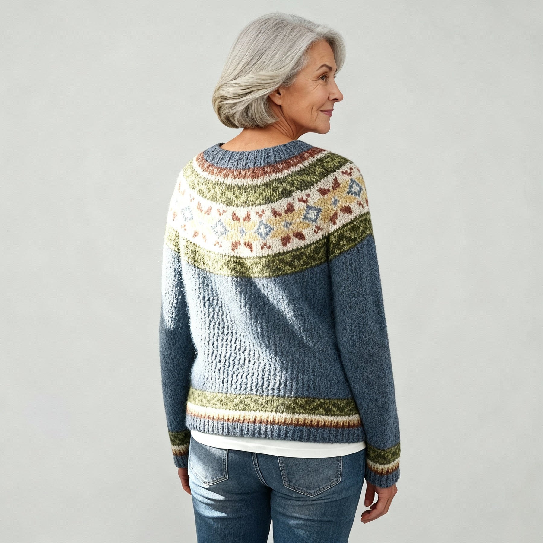 Tämä villapaita tuli nopeasti suosikikseni. Materiaali tuntuu pehmeältä ja mukavalta, ja lumihiutaleiden kuvio tekee siitä juhlallisen ilman, että se on liian ylikorostunut. Saan kehuja joka kerta, kun pidän sitä. Se on kuin kodikasta ylellisyyttä, ja rakastan sitä, että se on käsintehty.